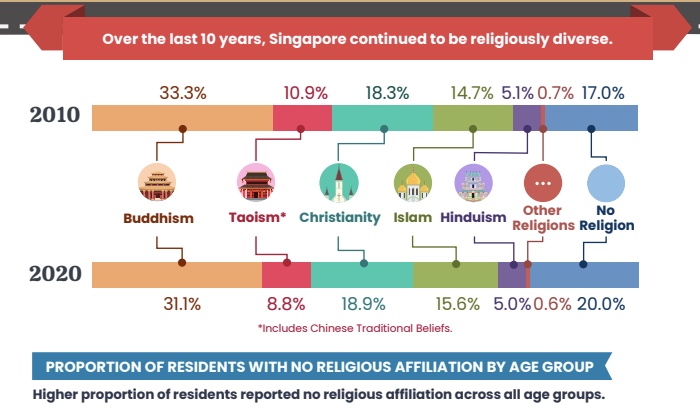 - Religion, would my religion create any reaction?. I’ve felt no reaction towards my religious beliefs. Being a multicultural society, with Hindu, Buddhism, Taoism, Catholics, Muslims, … Everyone is very understanding of others having different beliefs, and as long as we feel the same way there are no issues at all. Non-muslim women are free to dress however they prefer and I haven’t seen any discrimination towards others.